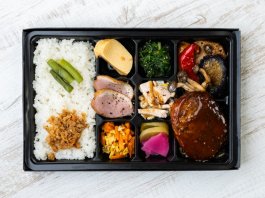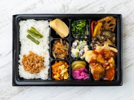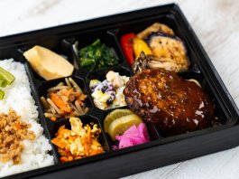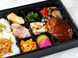 ハンバーグはカットされているので箸でも食べやすいです。いろいろなおかずが入っていて飽きないですし、味付けも全体的においしいです。