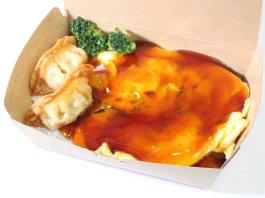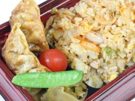 味付けのチリソースはおいしかったですが、エビチリ部分を見た時、エビの形を感じない、チリソースのかたまりみたいな感じでした。揚げ餃子は肉感があり、味付けも美味しかったです。箸休めのザーサイも安定のおいしさでしたが、お弁当のサイズ感も小さく全体的に残念でした。