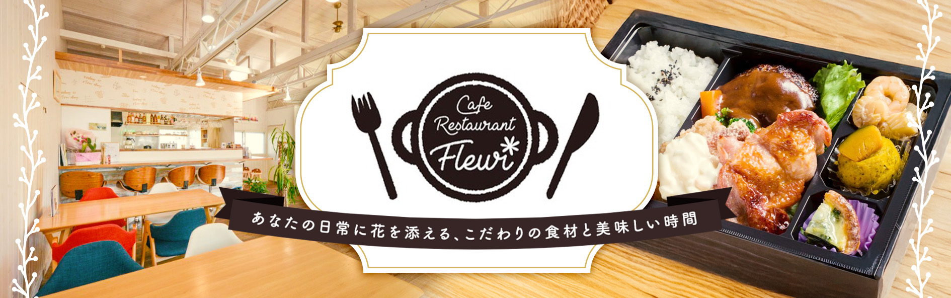 お花畑のように心が和む、フルールの仕出し弁当。常陸牛・まごころ豚・あじわいポークをブレンドした特製ハンバーグ、地元茨城の野菜や手作りソースなど、食材にとことんこだわりました。大切なひとときに、笑顔が咲くおもてなしをお届けします。